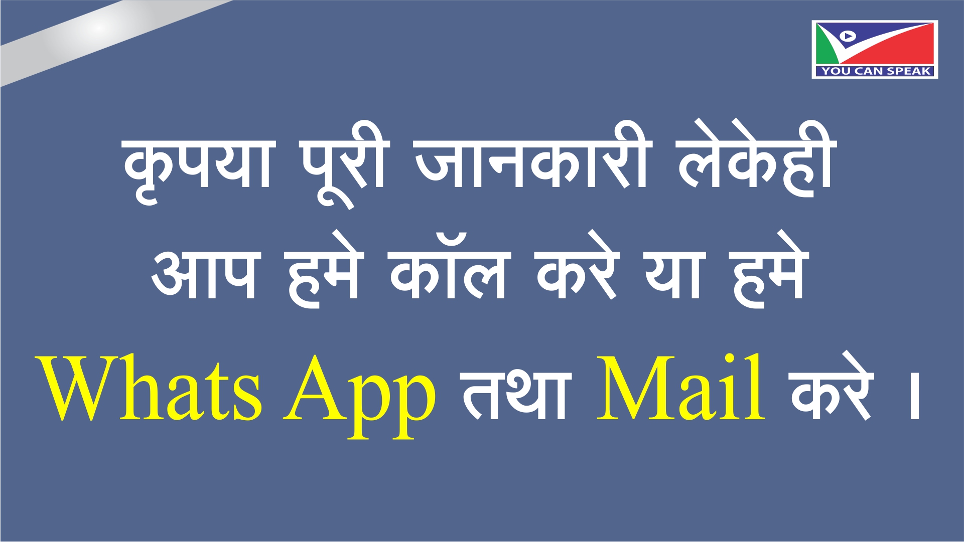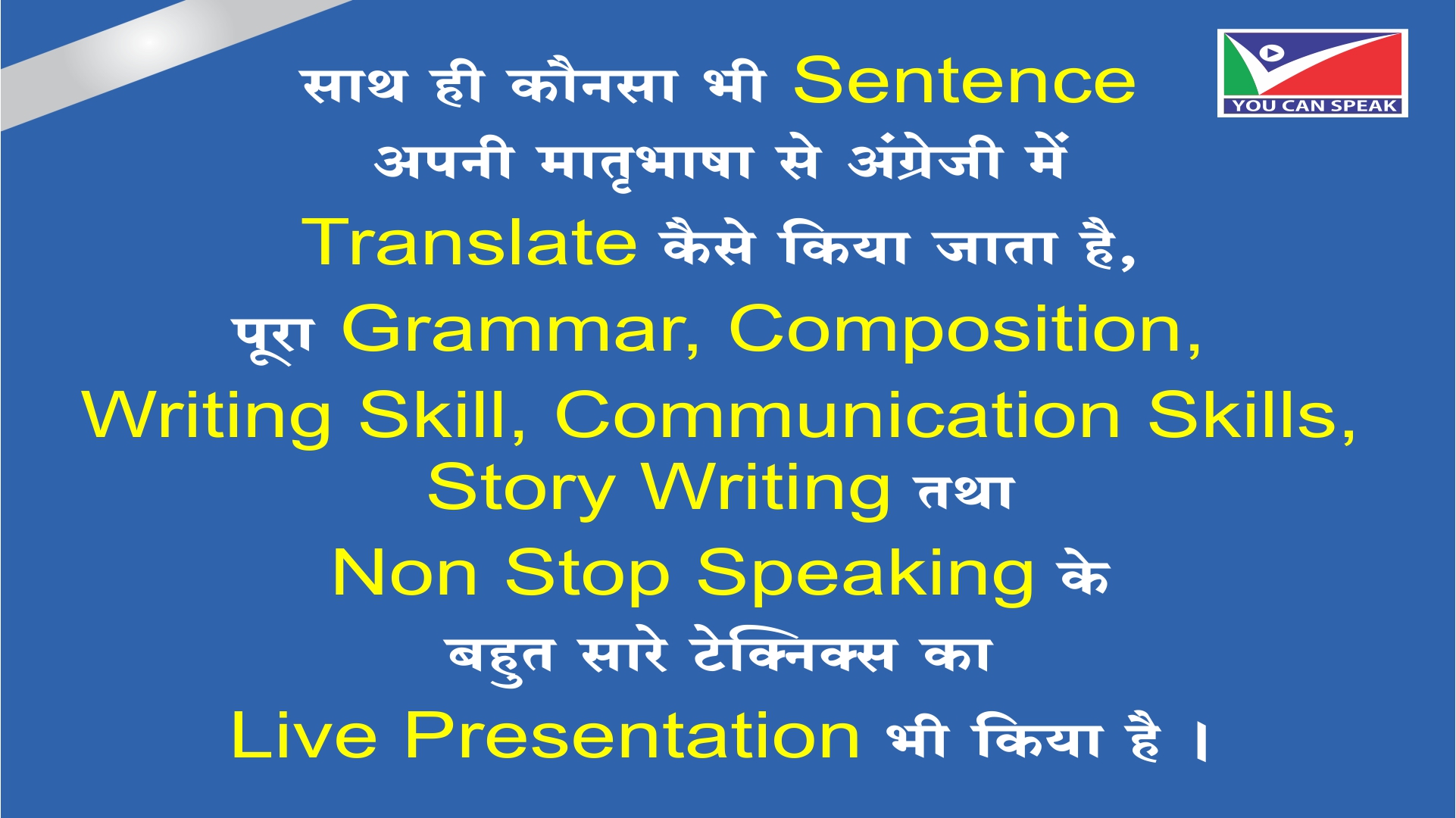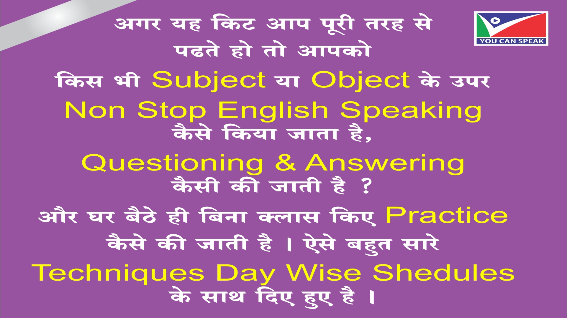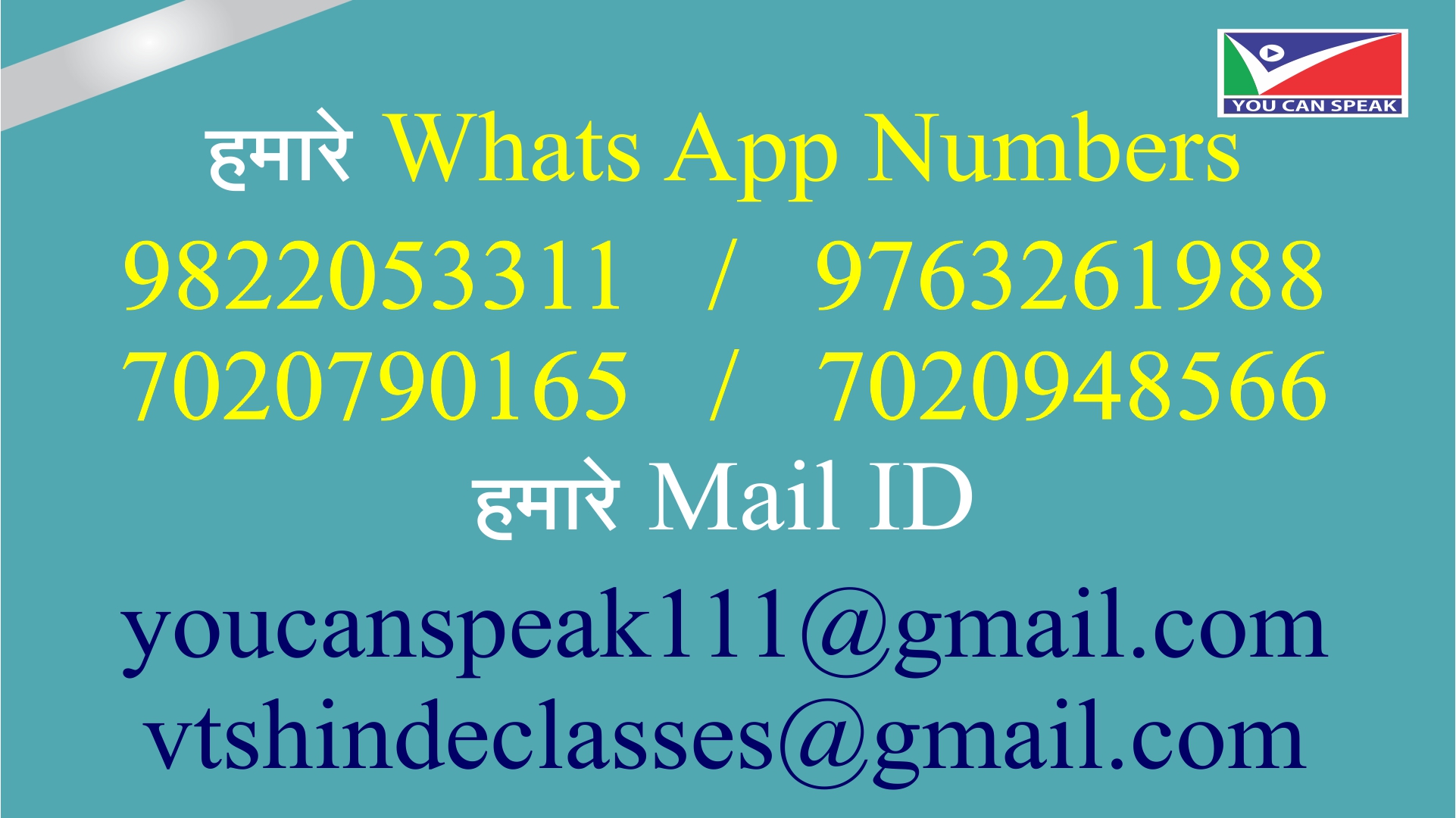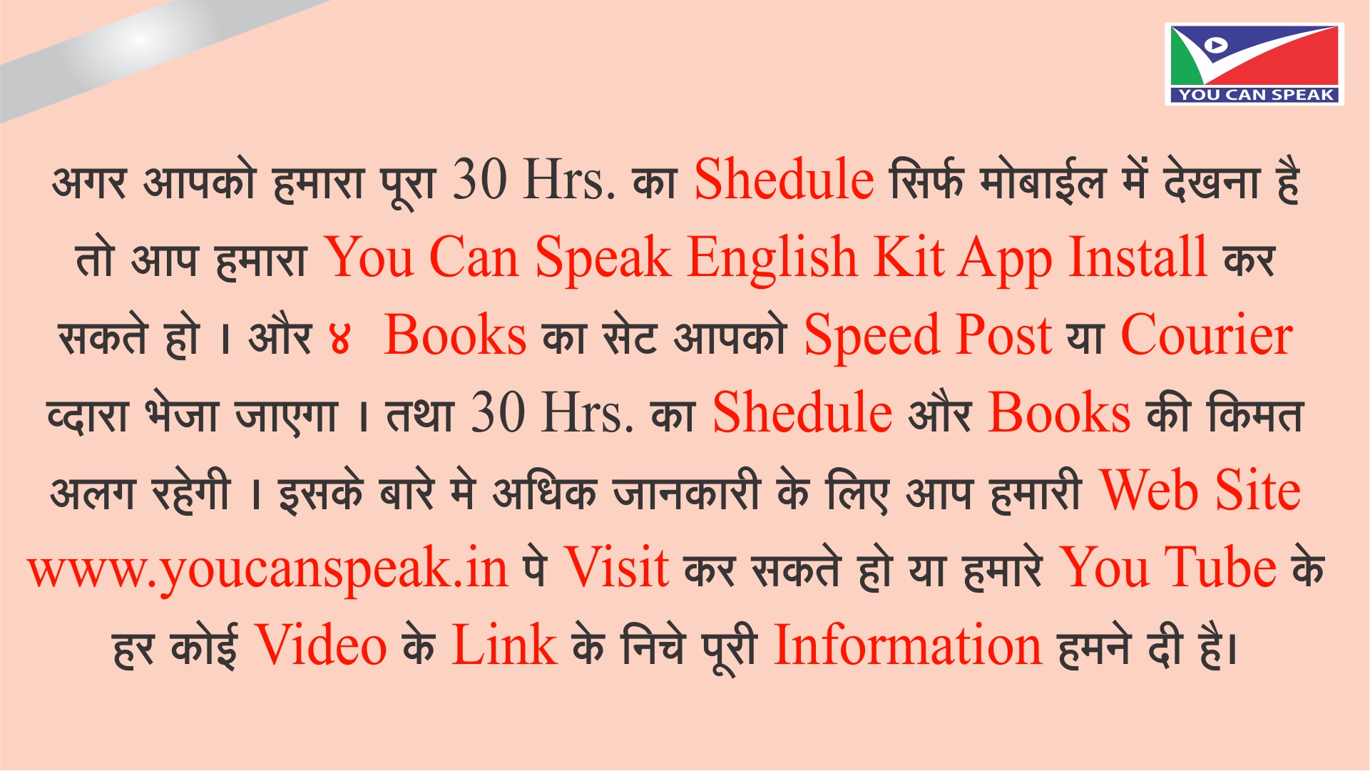 You Can Study Our Complete Course From Our App Also Download our You Can Speak Kit & App from play store: https://play.google.com/store/apps/details?id=co.april2019.ycsk 60 Days App Course Price Only 1555/- Including 4 Books. You will get 4 Books Free of Cost if you purchase the course from our App For Marathi English Version Please Install Our V T Shinde's Spoken Kit & Classes https://play.google.com/store/apps/details?id=co.jarvis.vts