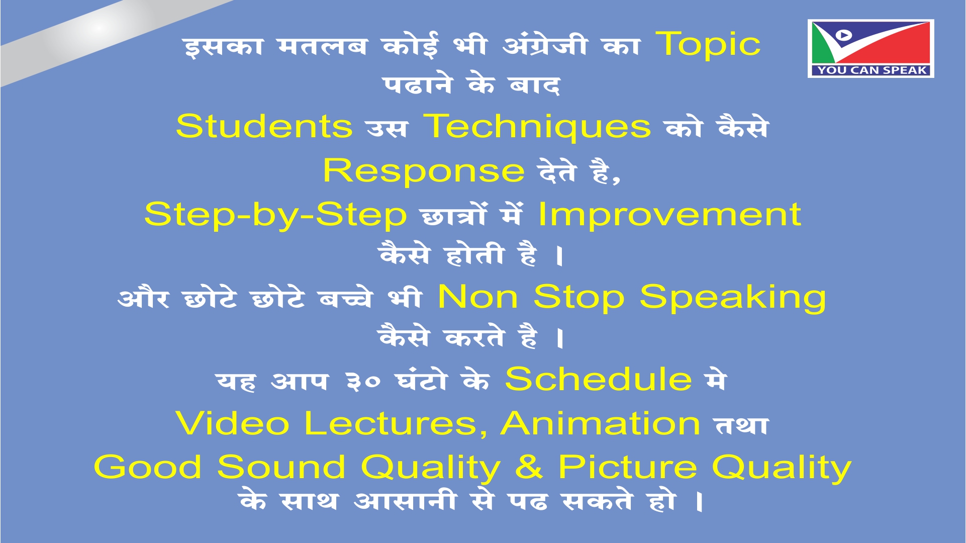 You can watch some demo videos of our students. For complete course kindly watch and study more than 60 Days. sequence wise & day wise video lectures schedule along with 4 important books of English language. Now our all schedule is available in pen drive version.